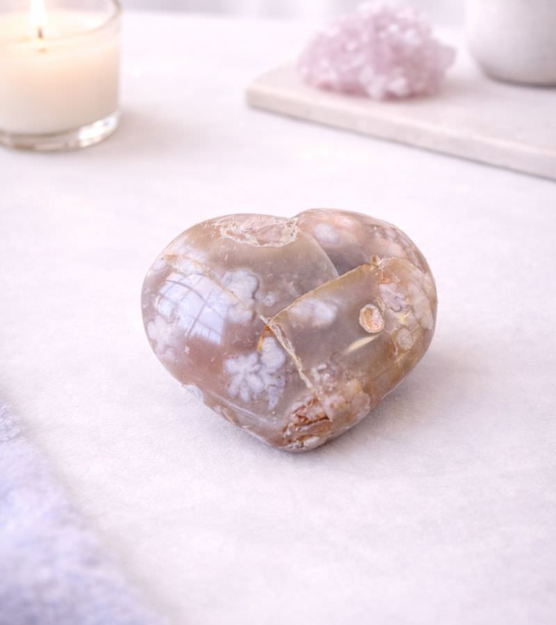 Self-Growth and Motivation: Flower Agate is often called the “growth crystal” for its ability to inspire new beginnings and inner development. The heart shape nurtures this process, offering encouragement and emotional resilience as you pursue your goals and dreams.