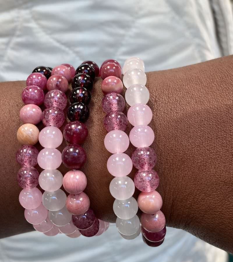 This unisex bracelet features a harmonious blend of Rose Quartz, Strawberry Quartz, Rhodonite, Garnet, and Moonstone — each chosen for its connection to love-centered energy and heart healing. Together, these crystals are often associated with encouraging forgiveness, gratitude, passion, intuition, and new beginnings.