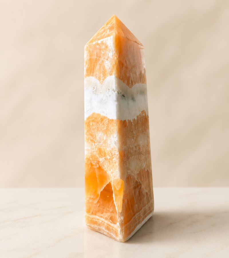 The Orange Calcite Tower is ideal for those seeking to enhance their creative abilities, find emotional healing, or boost their energy levels. Whether used in meditation, energy work, or as a tool for setting personal intentions, it helps to align the body, mind, and spirit, bringing forth a sense of harmony, vitality, and creative flow.