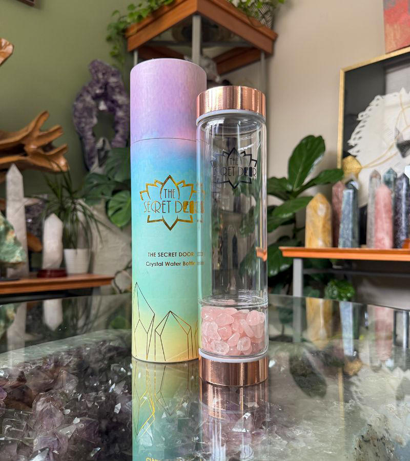 Our Gem Water Bottles combine timeless stainless steel with durable borosilicate glass, elevated by a warm, radiant rose-gold finish that adds elegance to your daily hydration. Designed with a separate chamber that holds tumbled stones—safely enclosed yet energetically present—this thoughtful design allows you to enjoy the benefits of crystal-infused water without the stones coming into direct contact with your drink.