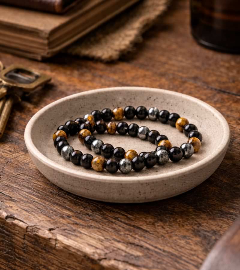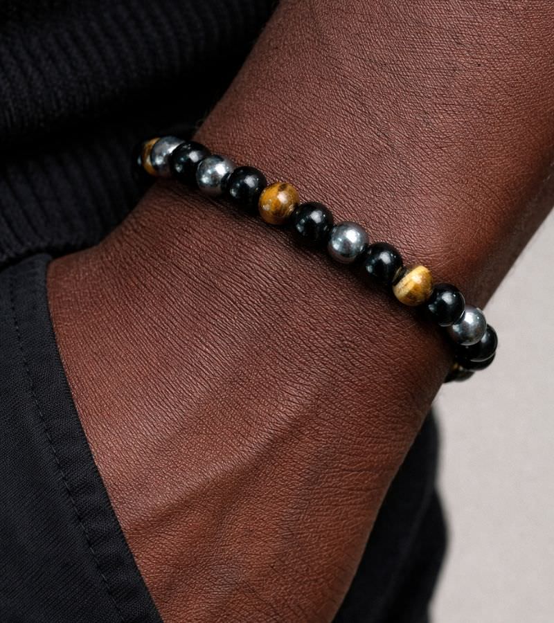 Our Protection Bracelet blends three powerhouse stones — Black Obsidian, Tiger Eye, and Hematite — into one striking piece, creating a perfect harmony of style and spiritual strength.